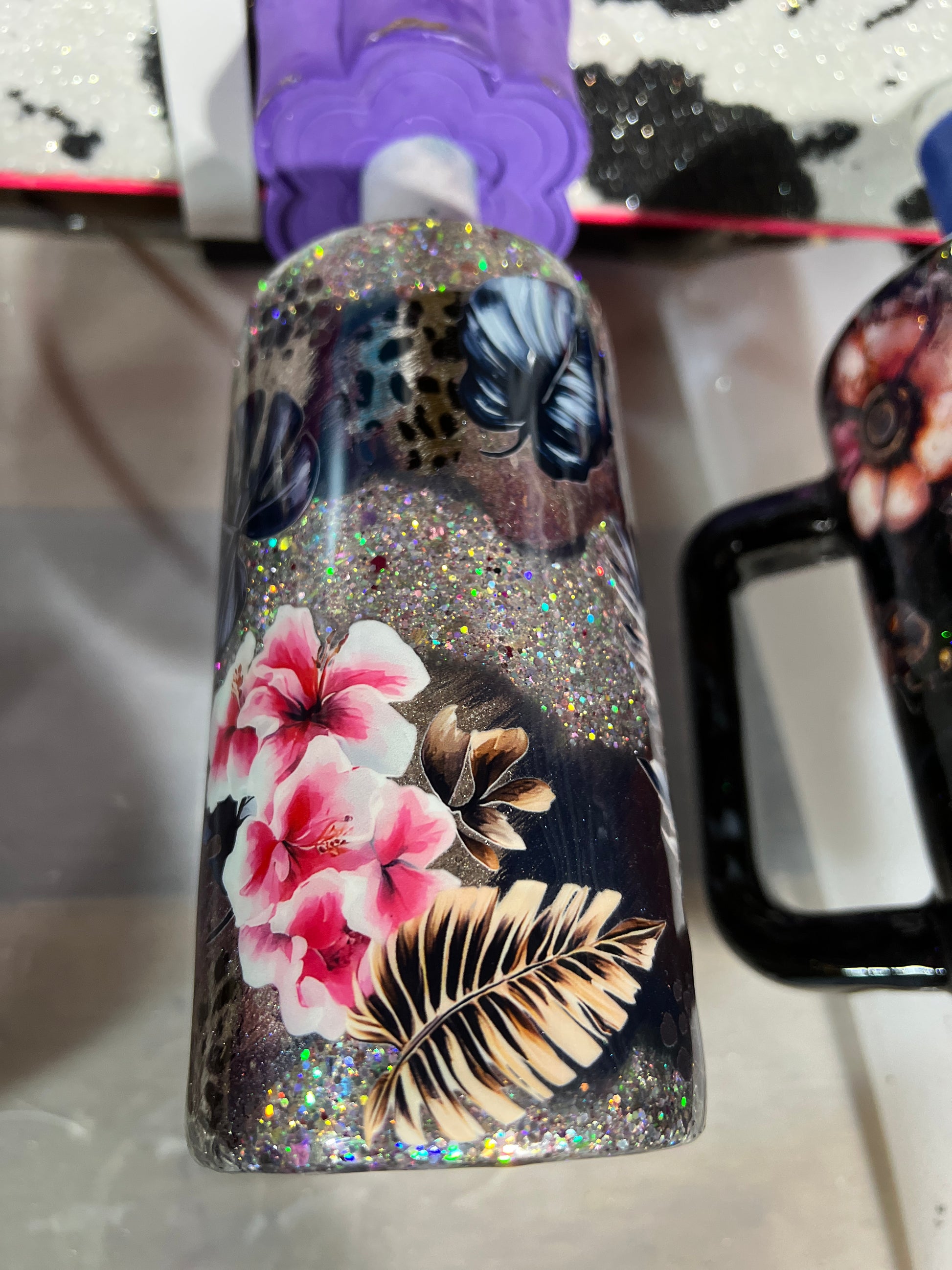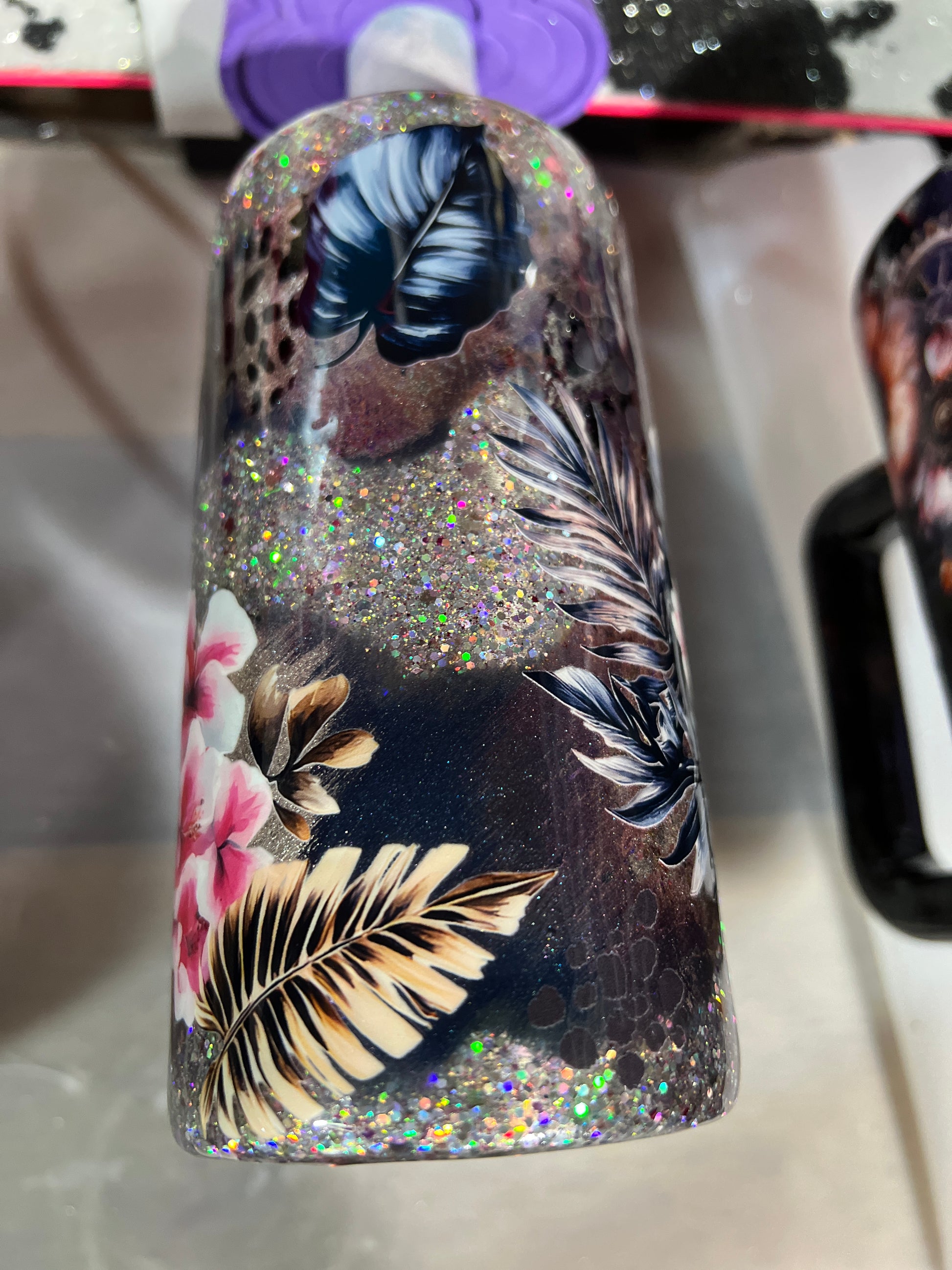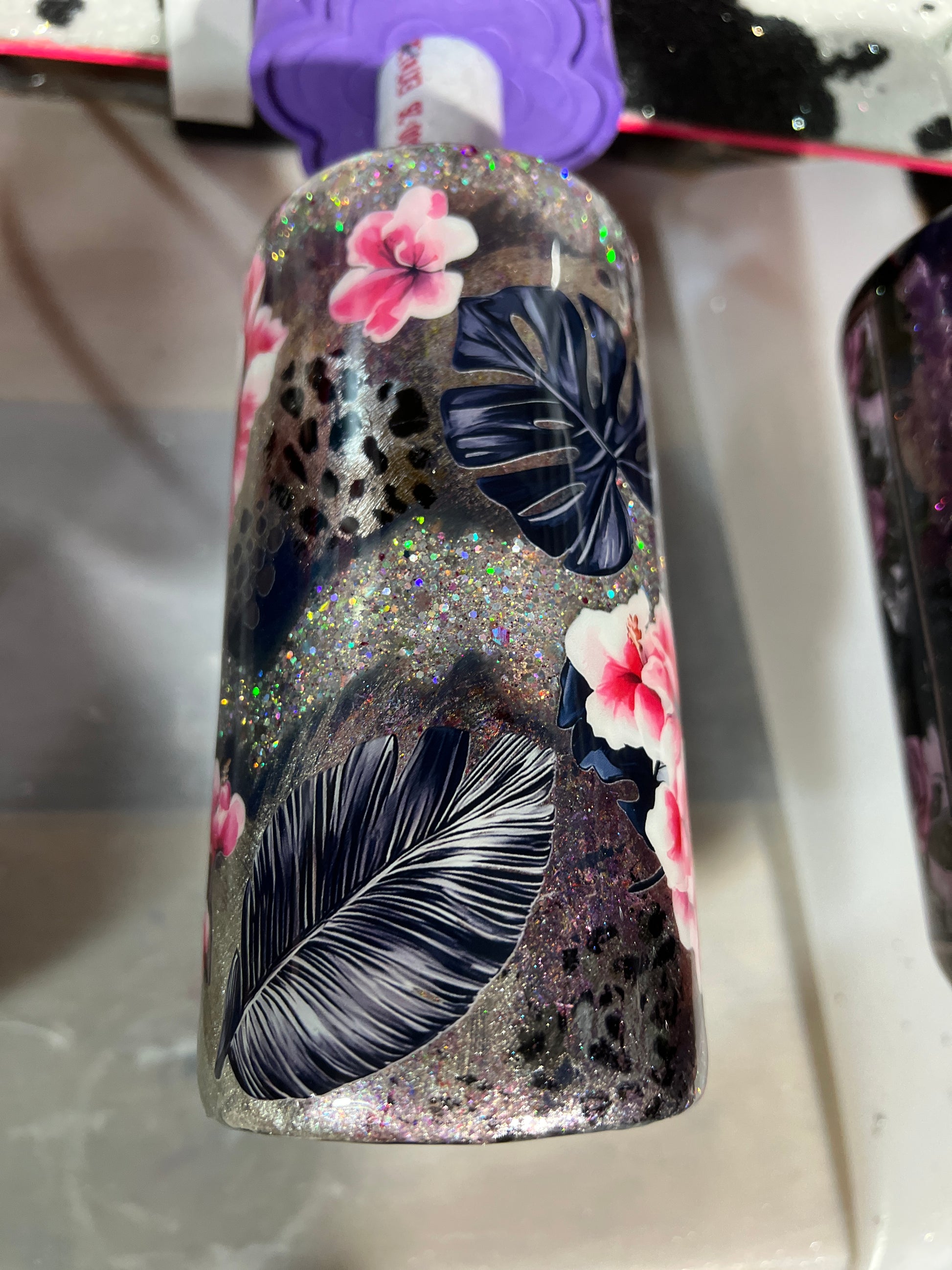 Clearance-RTS. 16oz plump tipsy glitter base monstera pink flower throw down