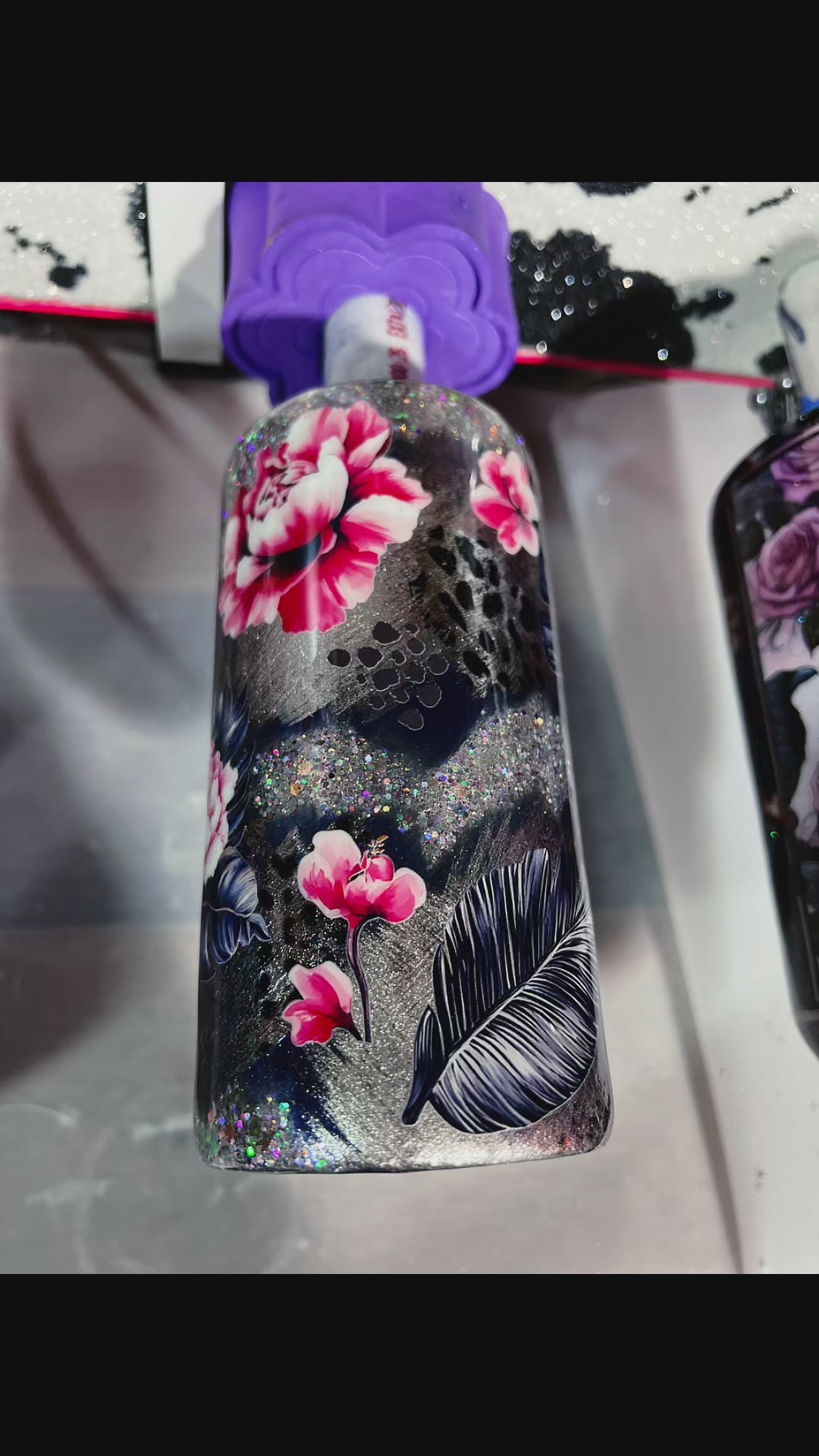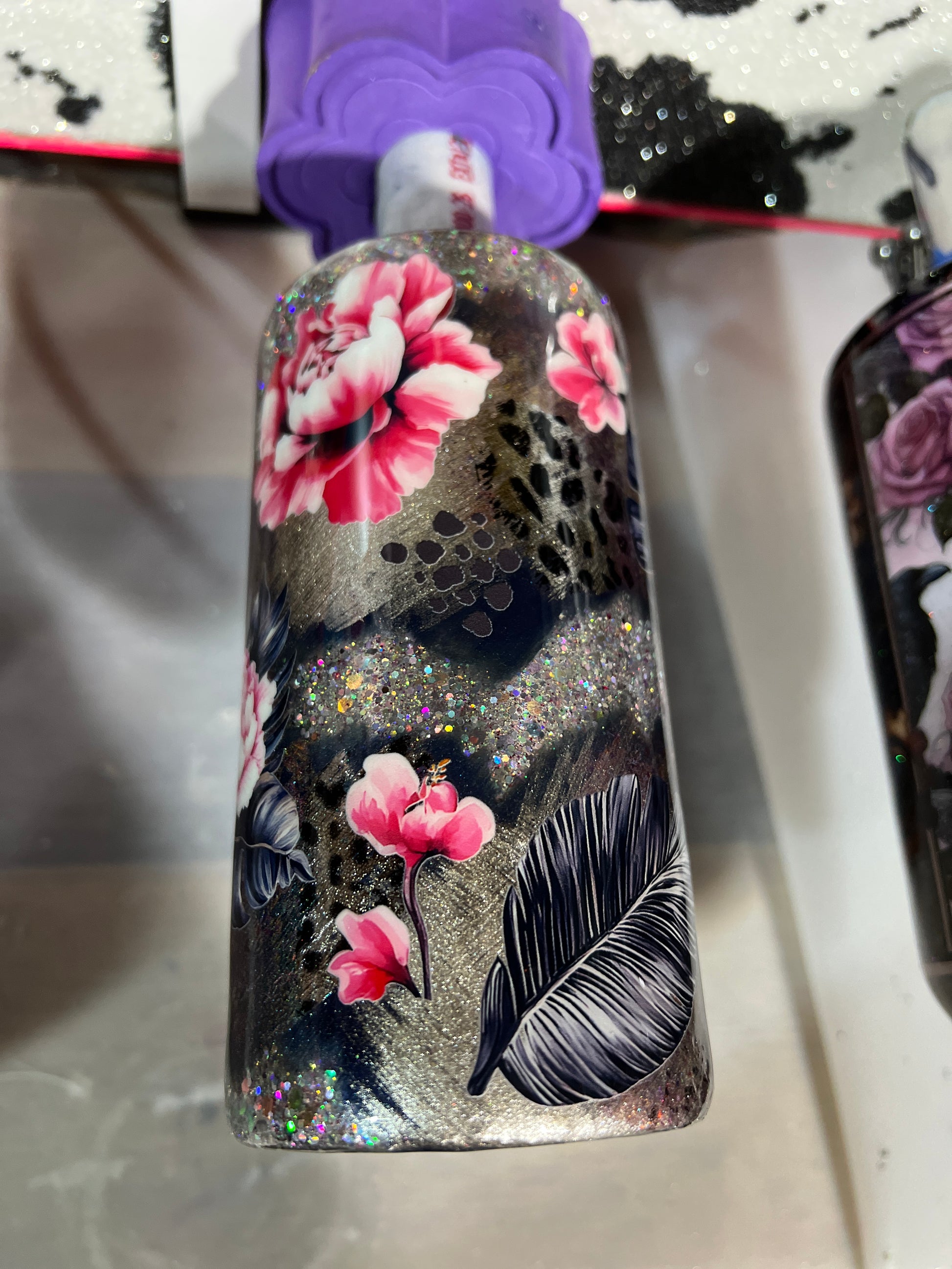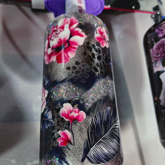 Clearance-RTS. 16oz plump tipsy glitter base monstera pink flower throw down