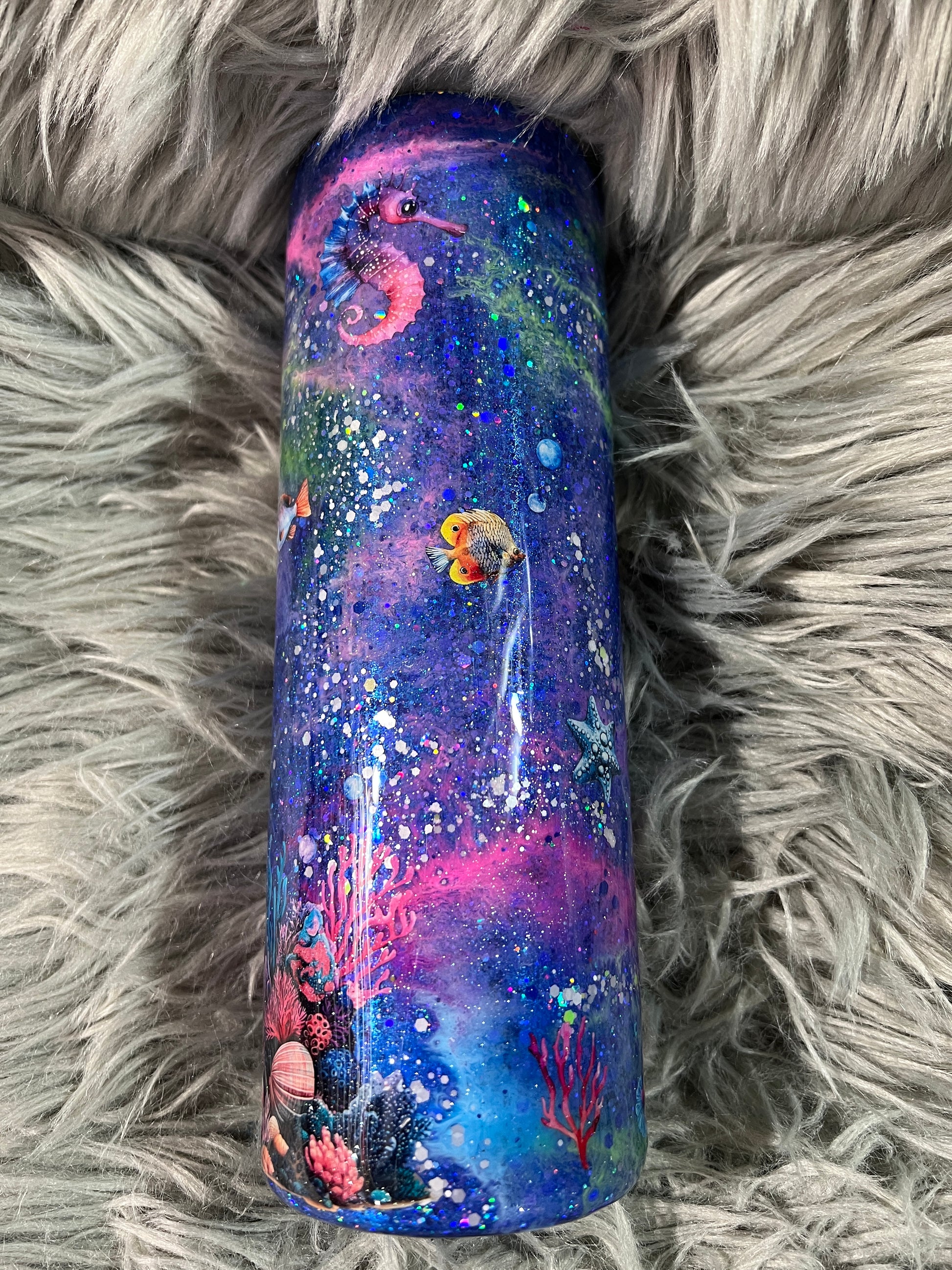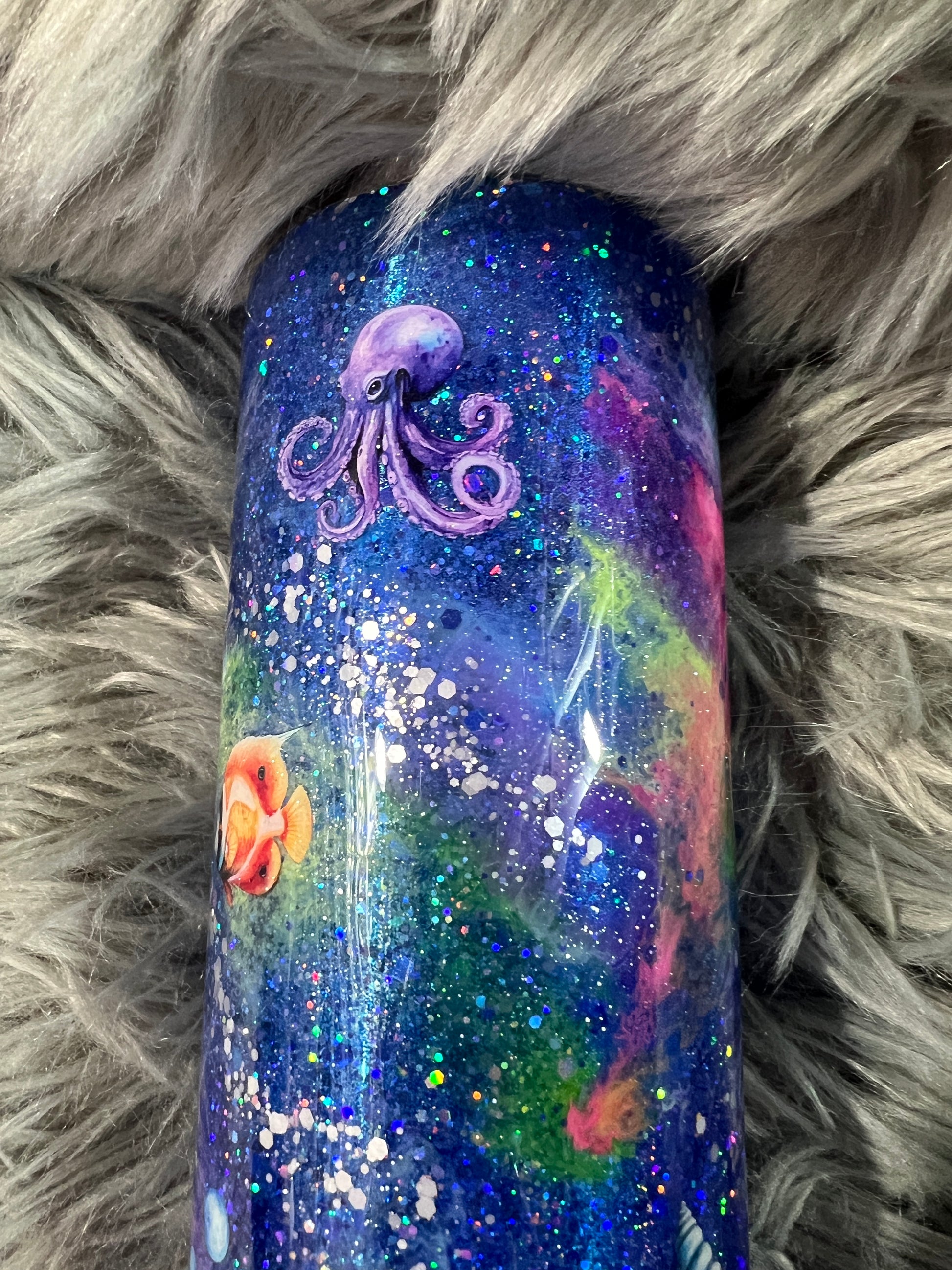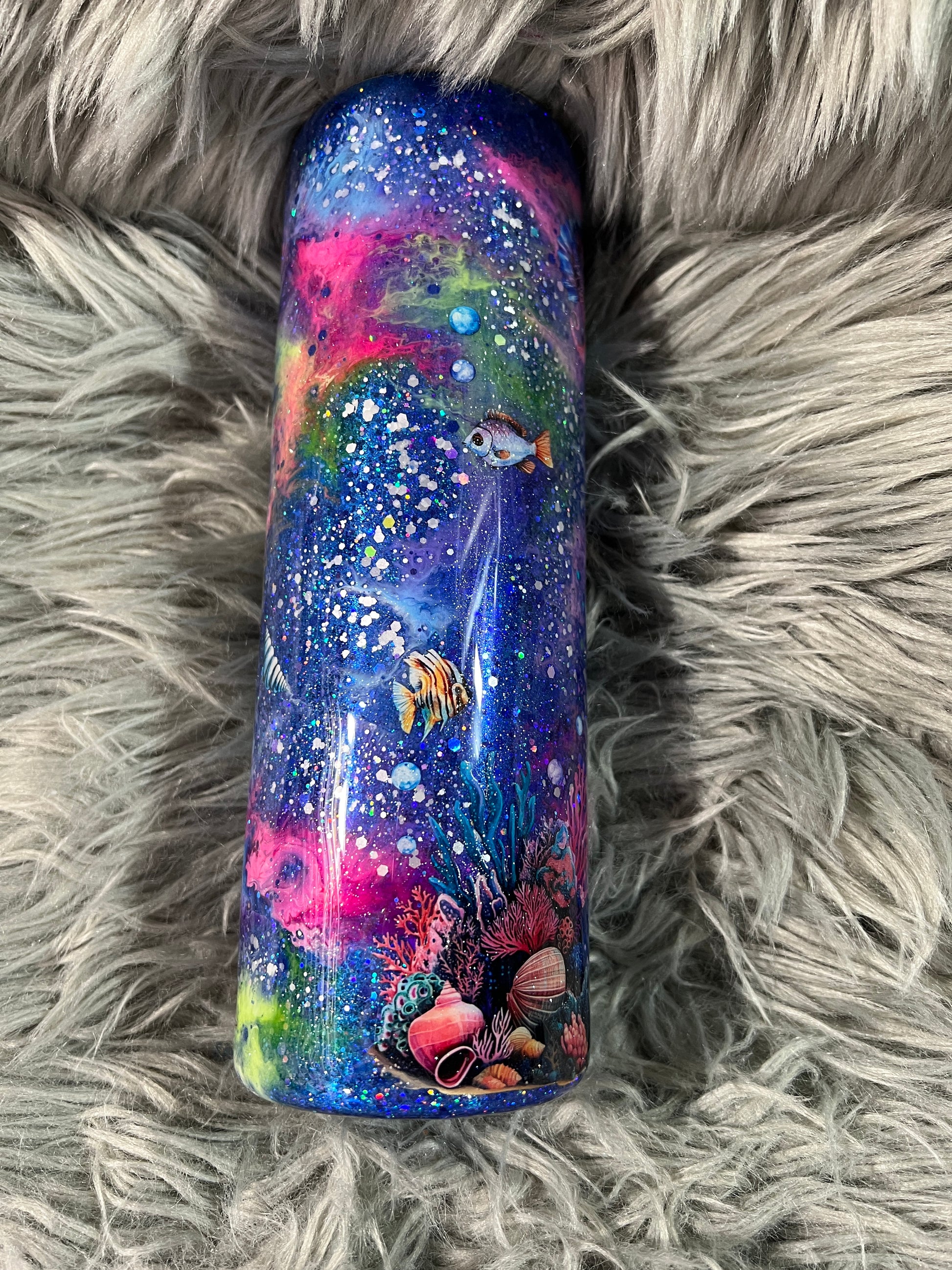 30oz stainless steel design made with epoxy for hot and cold drinks. Comes with lid and straw.
