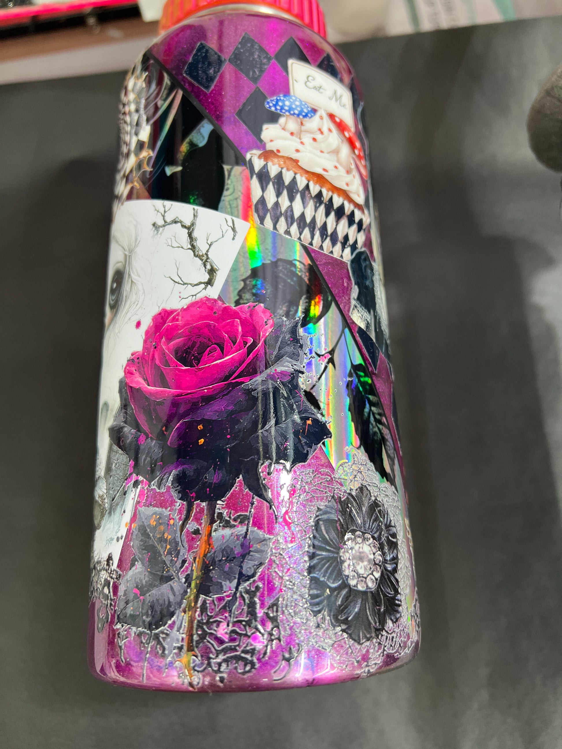 32oz stainless steel design made with epoxy recommended for cold drinks. Comes with Duo straw lid and chug lid.
