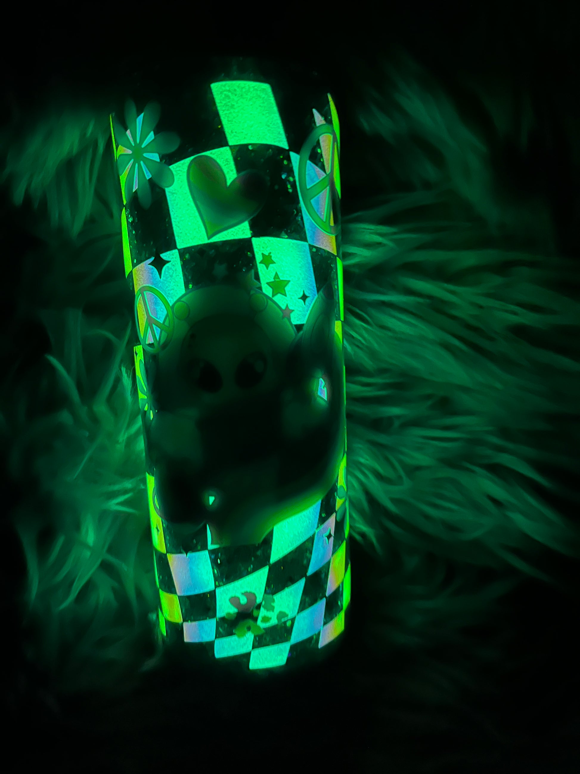 New RTS. Glitter glow in the dark alien in outer space 20oz duo