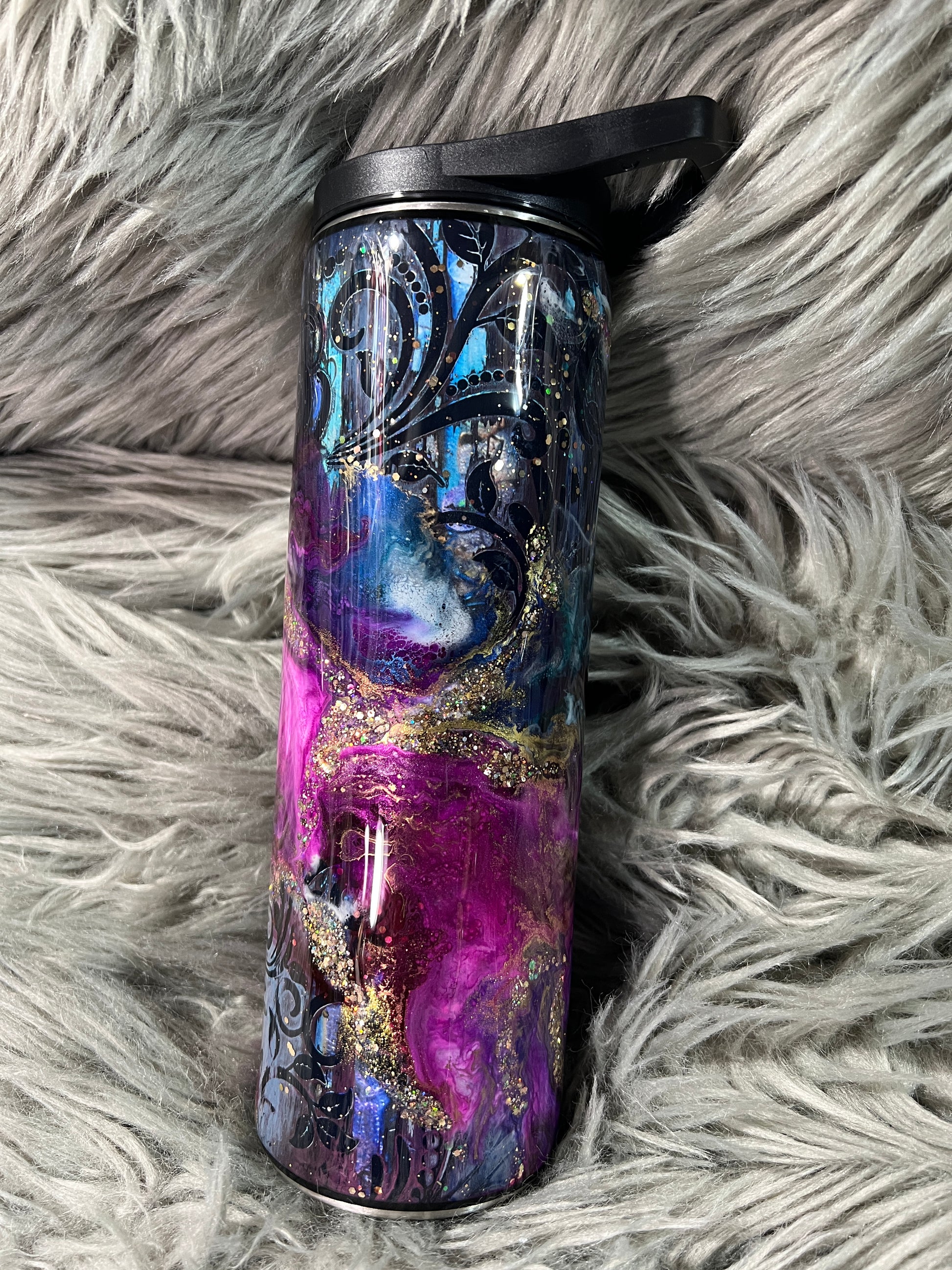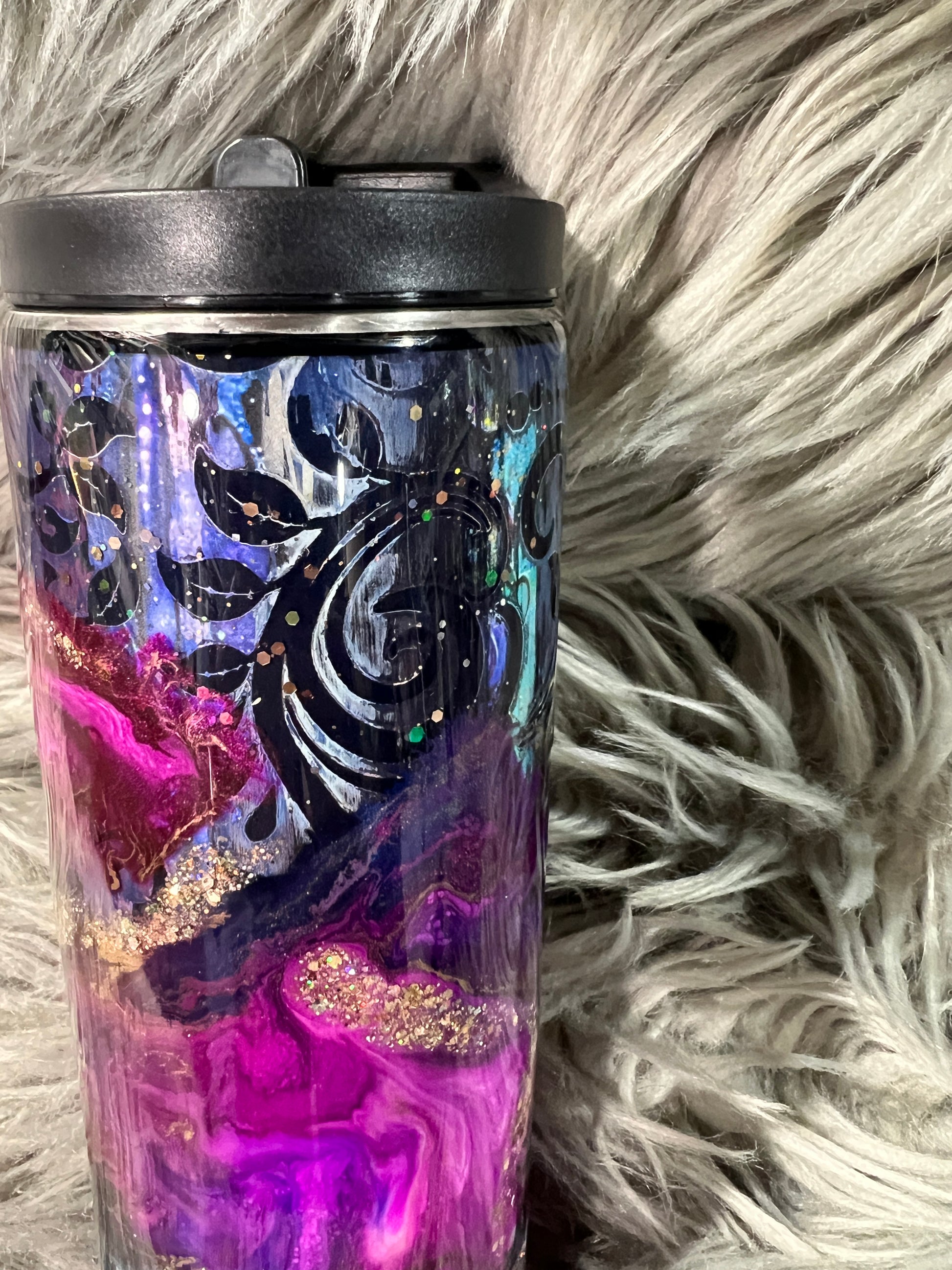 New!! RTS. Pink Purple blue reverse marble over distressed base 30oz duo