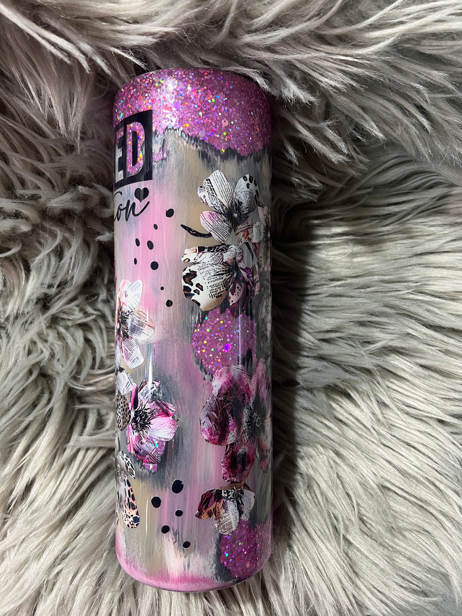 RTS. Pink glitter limited edition throwdown 30oz skinny straight