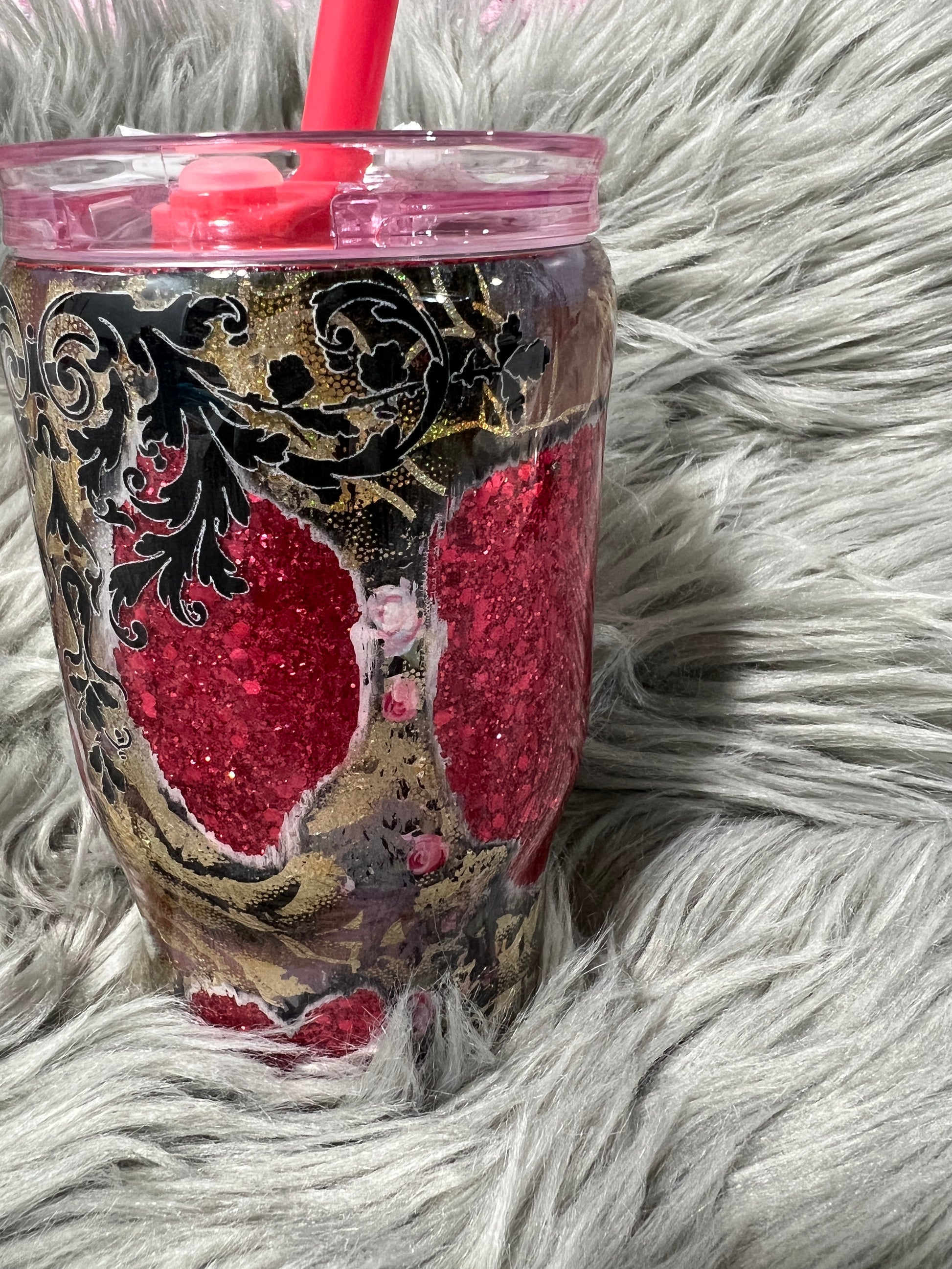 14oz skinny stainless steel and epoxy tumbler for hot and cold drinks. Comes with lid and straw.