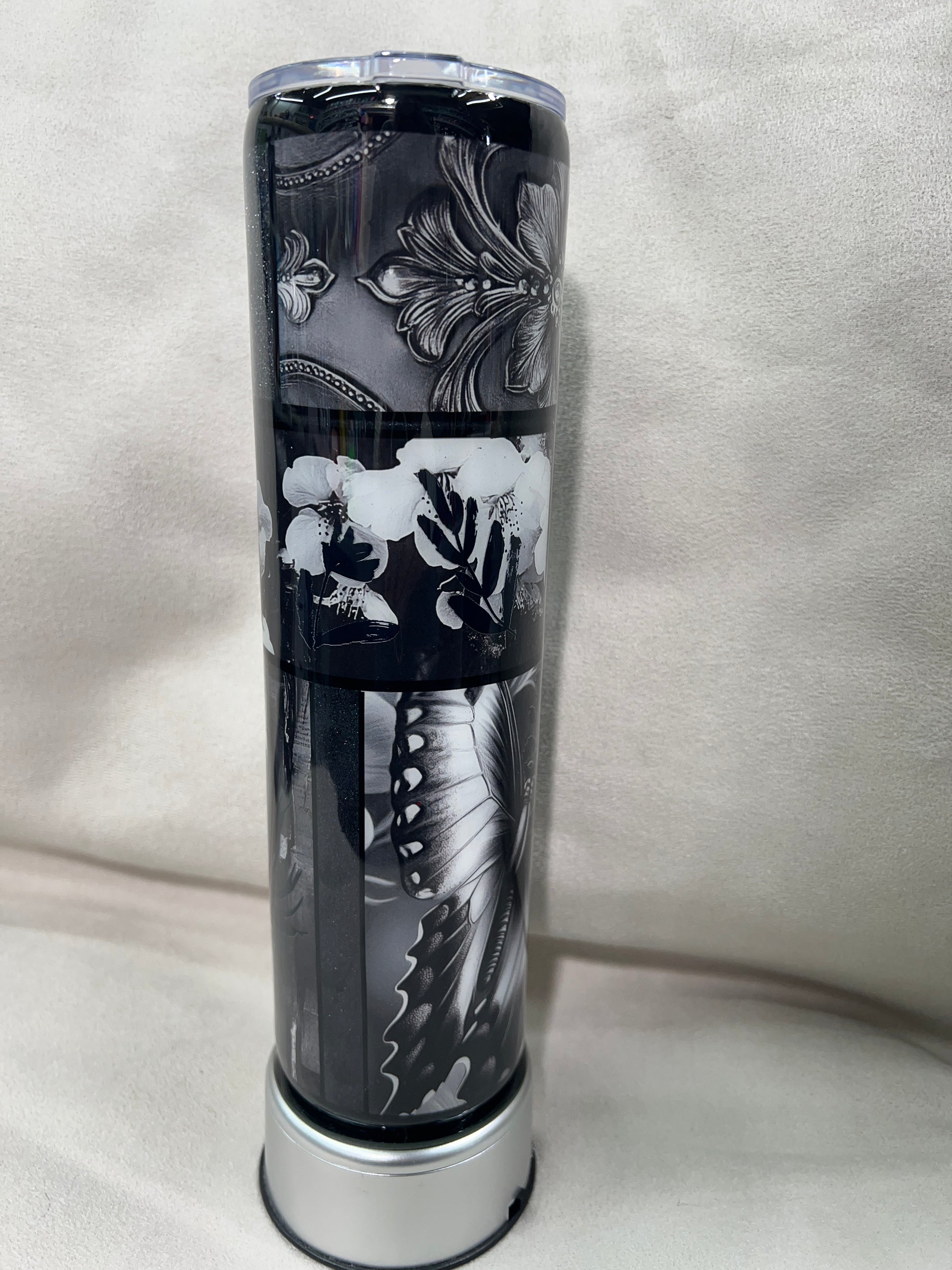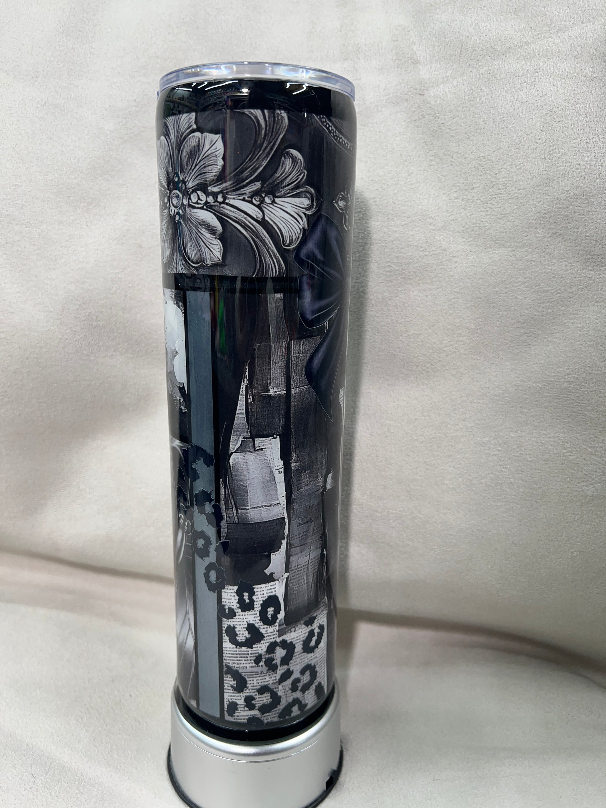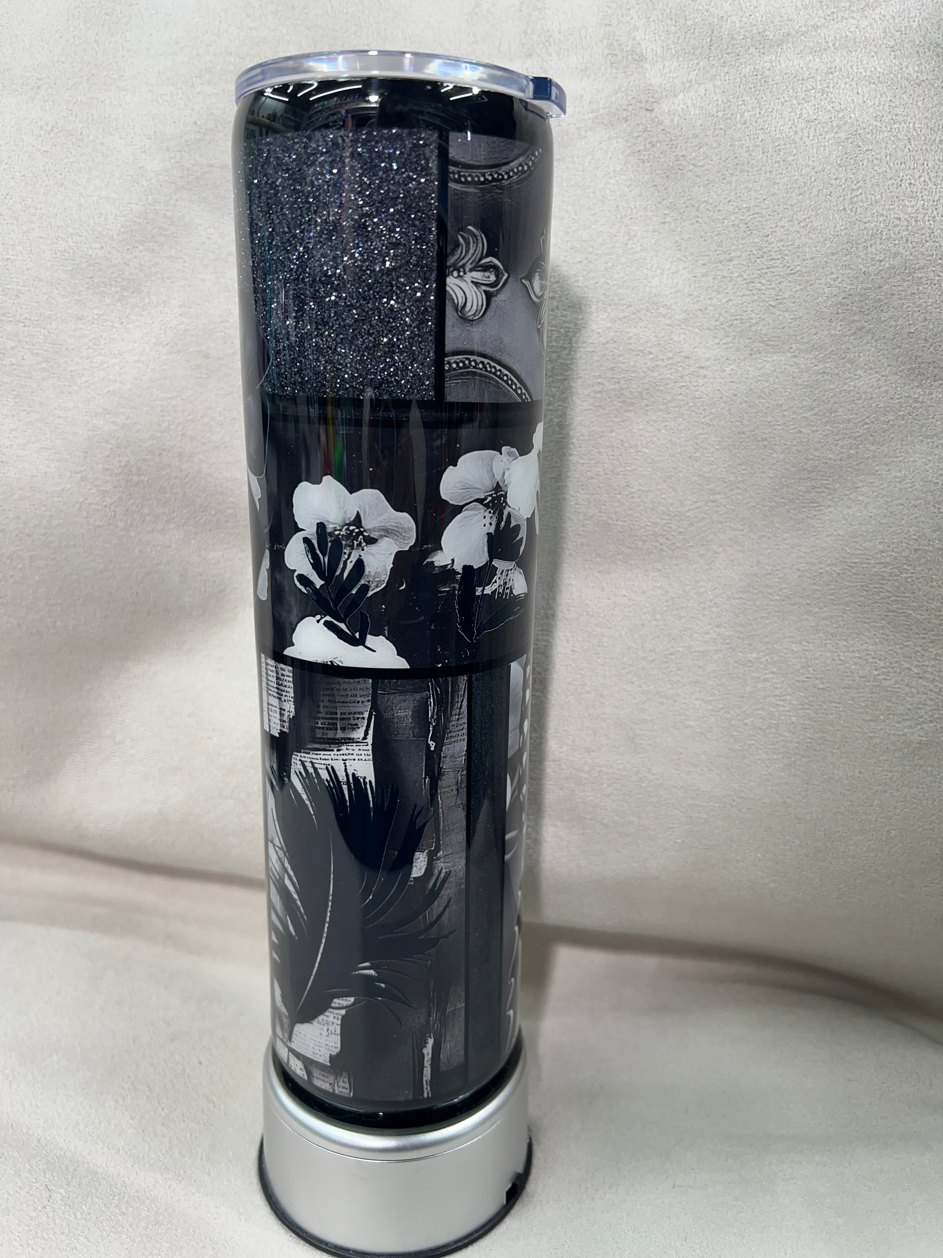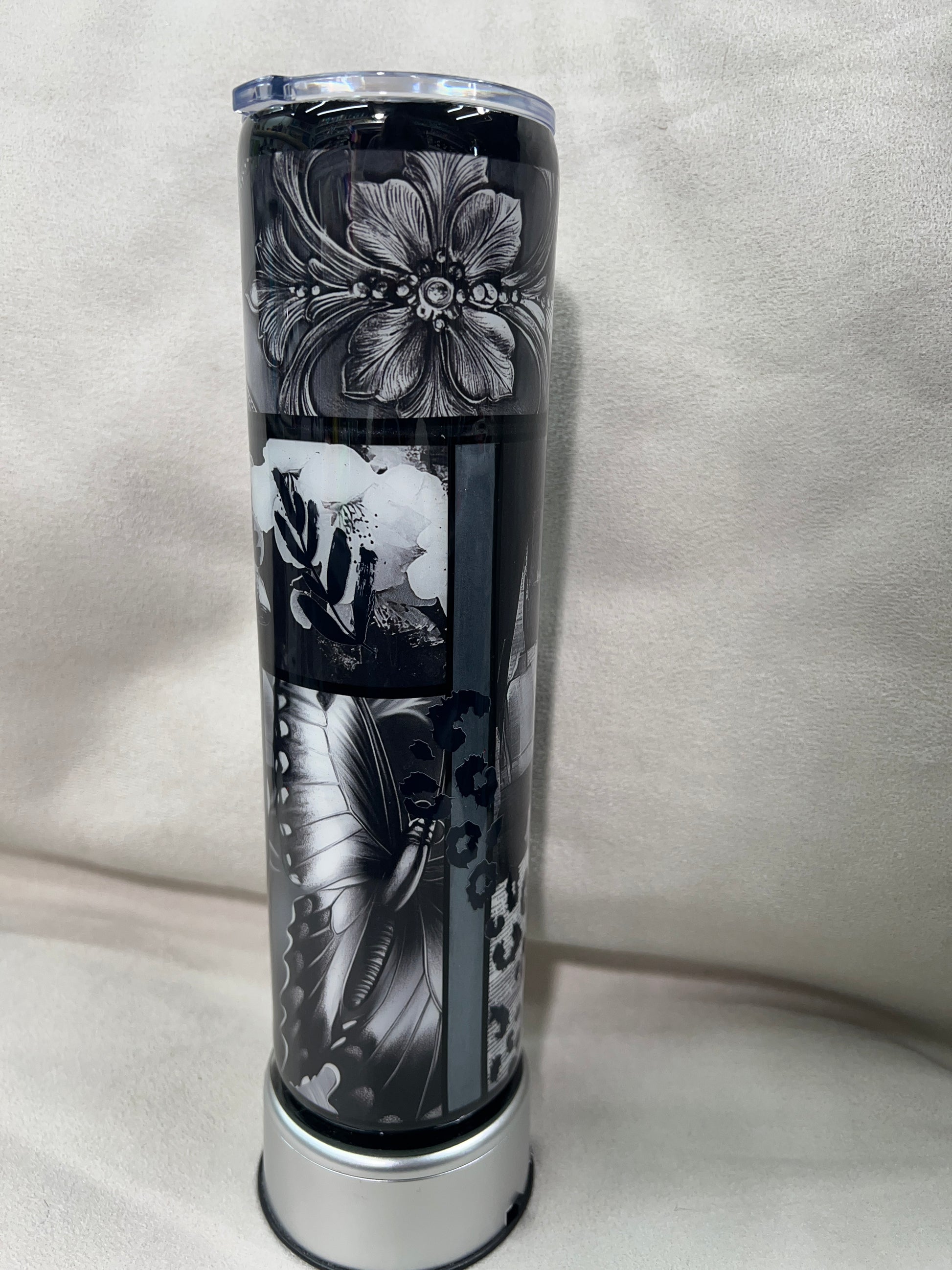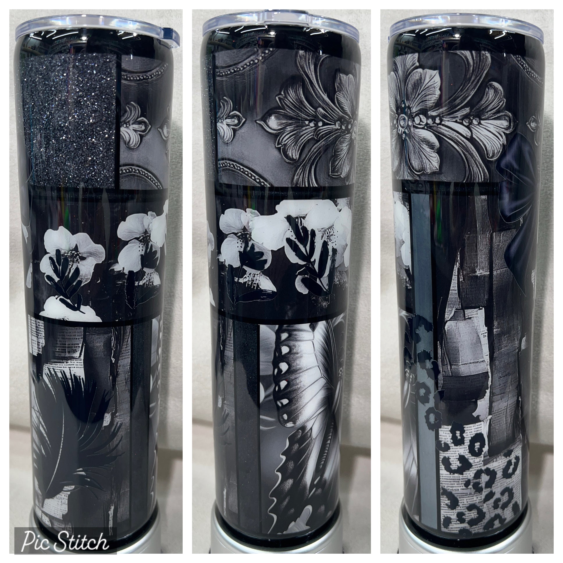 RTS. Black monochrome tumbler MakeHerRoom challenge 30oz