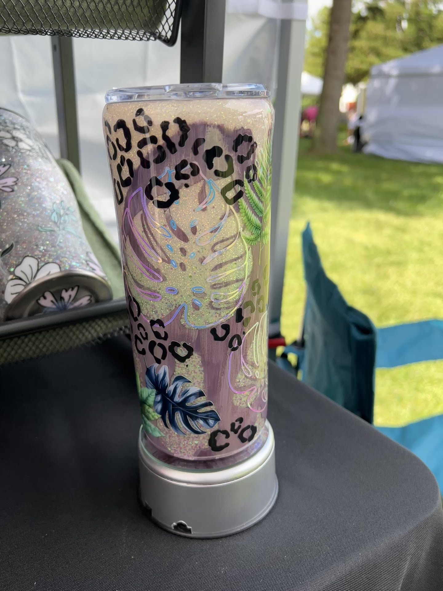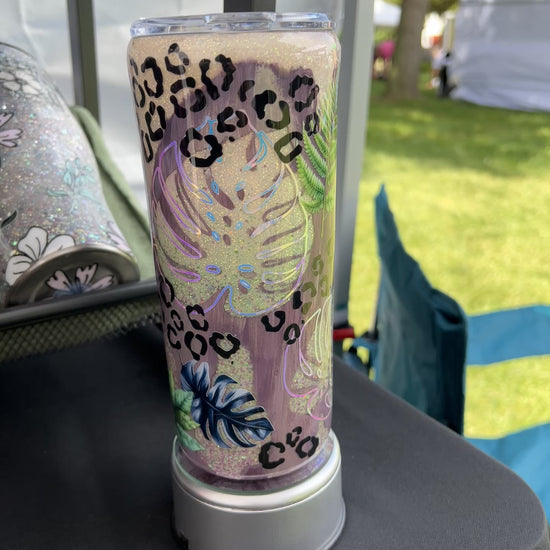 Clearance-RTS. Distressed Glow Monstera UV color change glitter base Built Brand 20oz