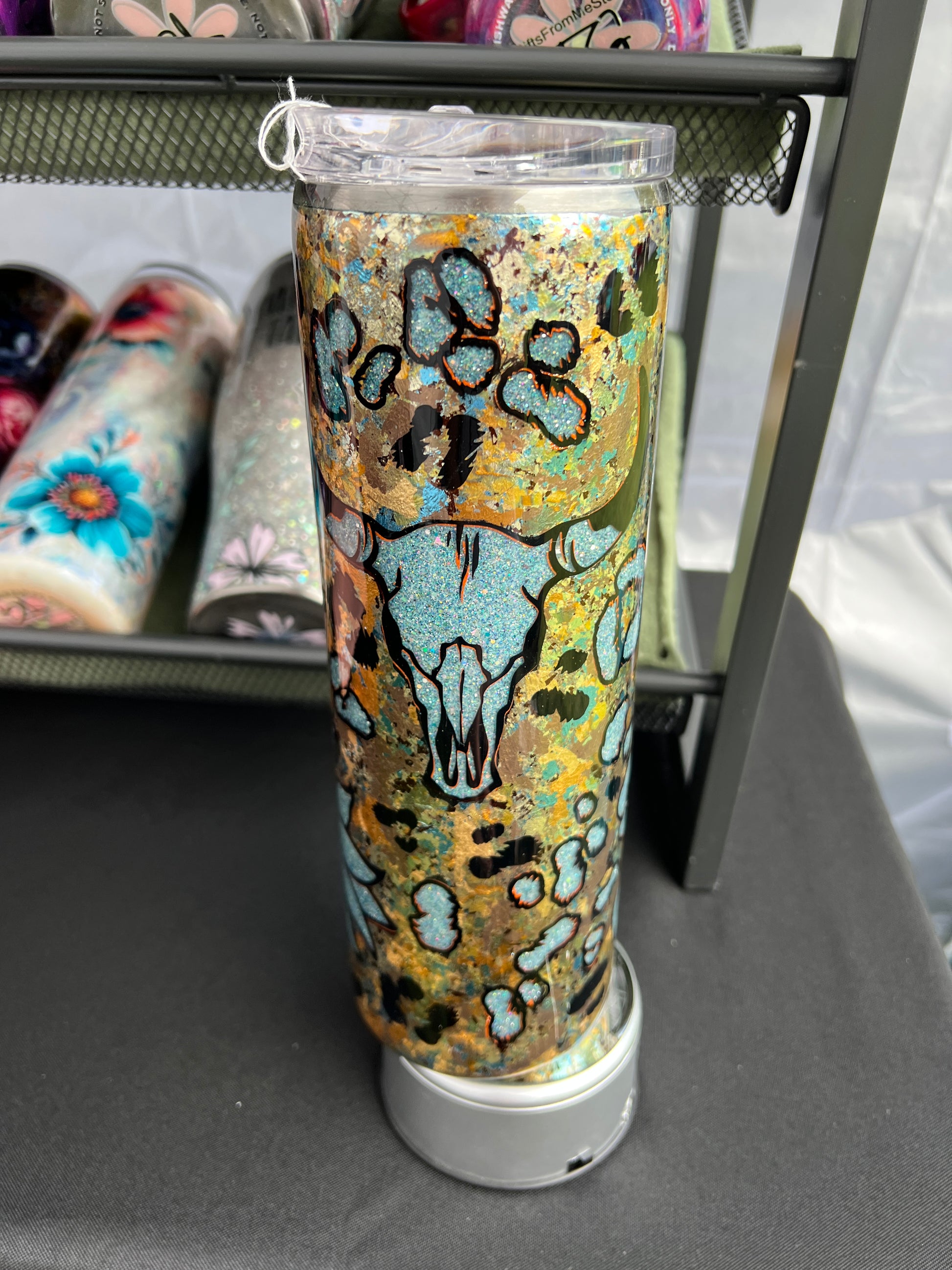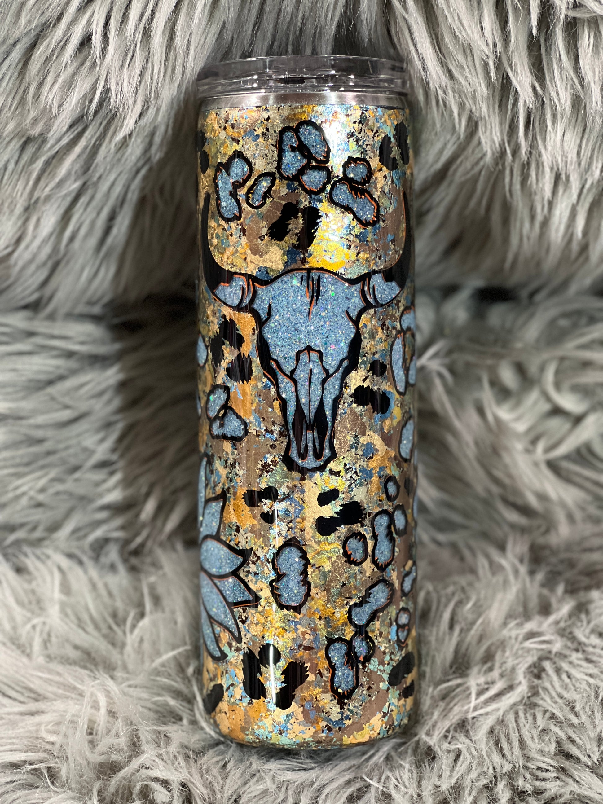 RTS. Peekaboo Bull Skull sunflower 30oz tumbler