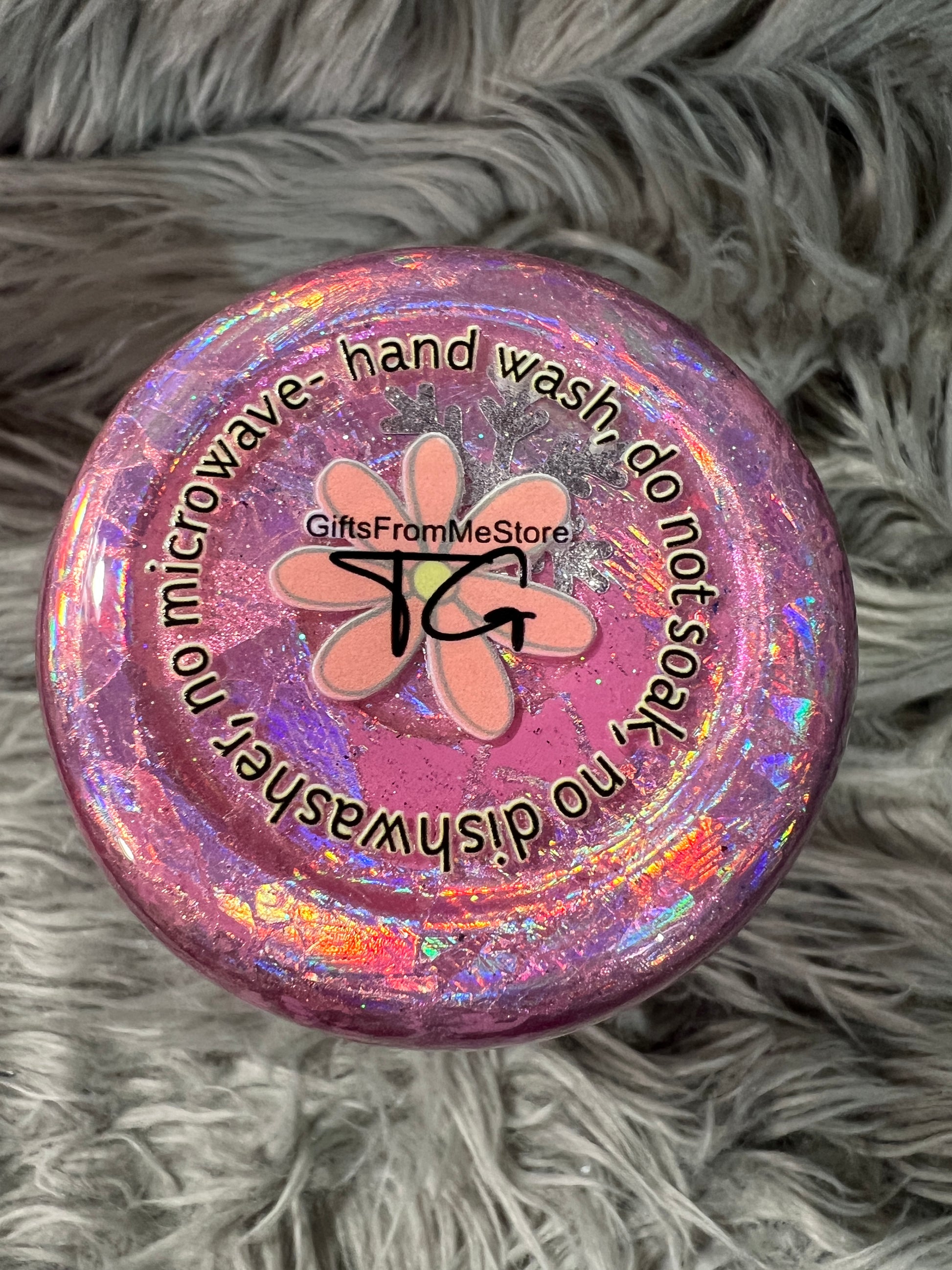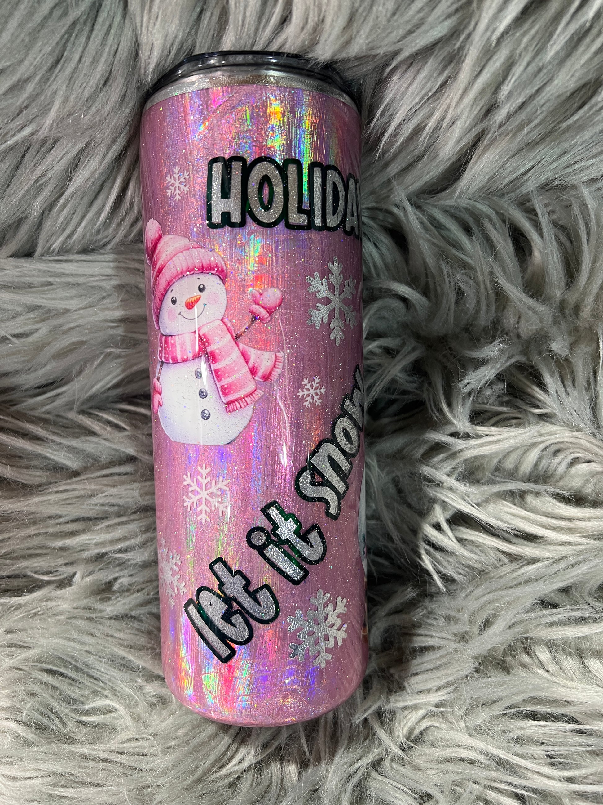 New!! RTS. Pink halo foil base Christmas snowman tumbler 20oz