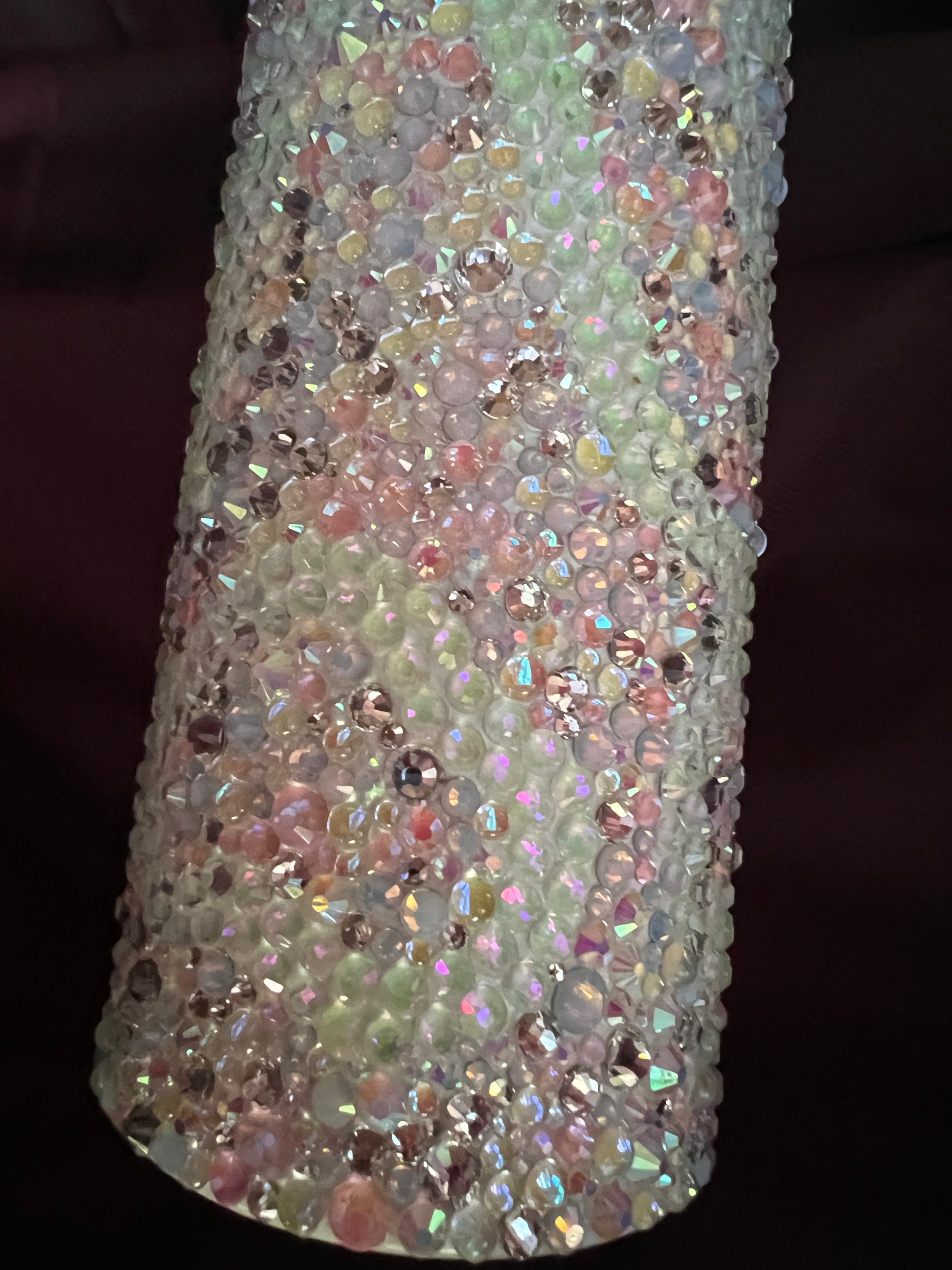 RTS. Rhinestone random Jessica Flynn Rhinestones with glow stones in waving pattern Tumbler 16oz