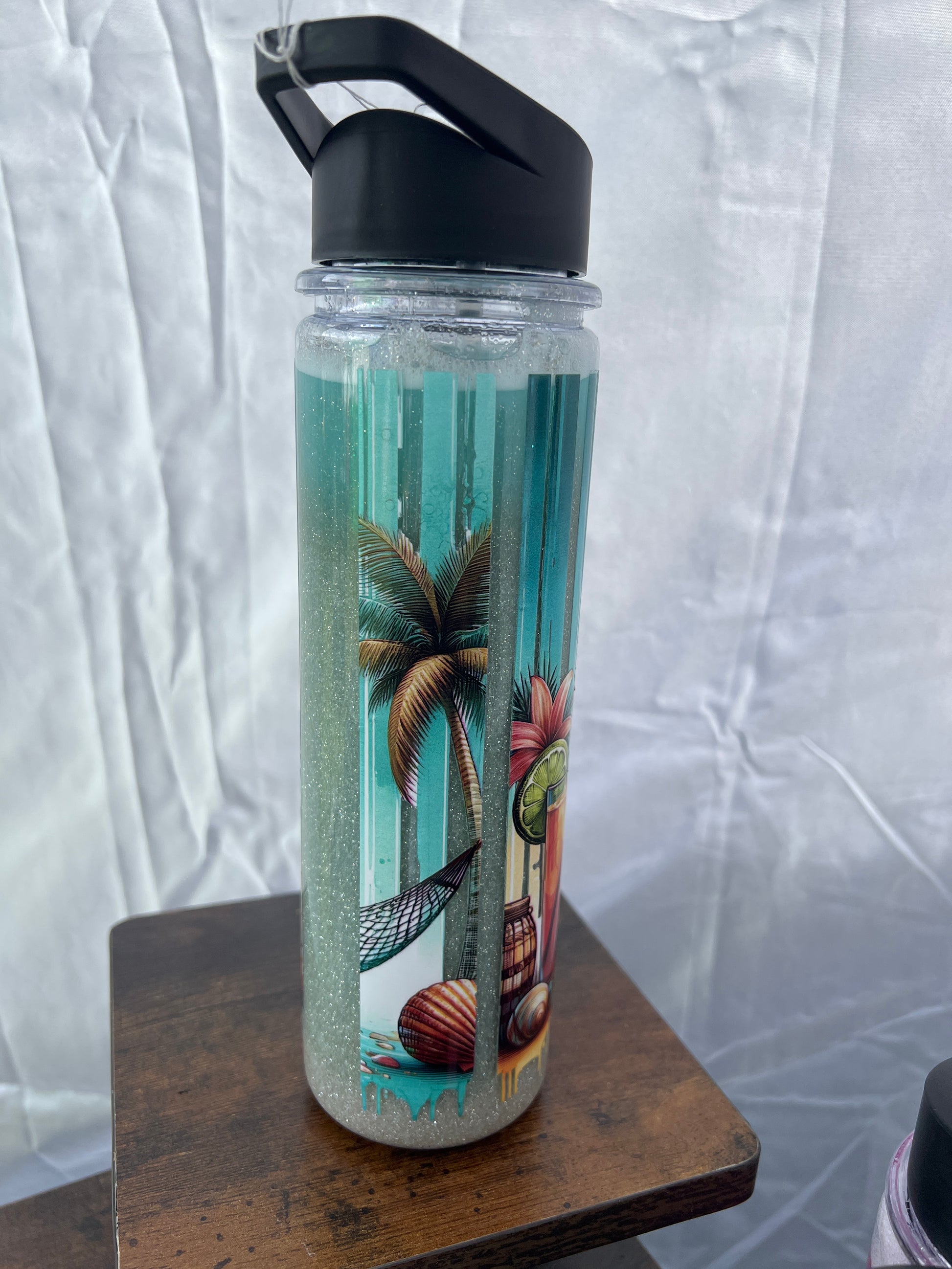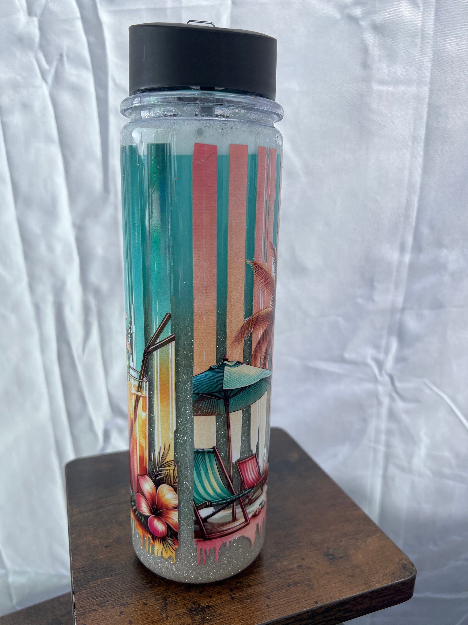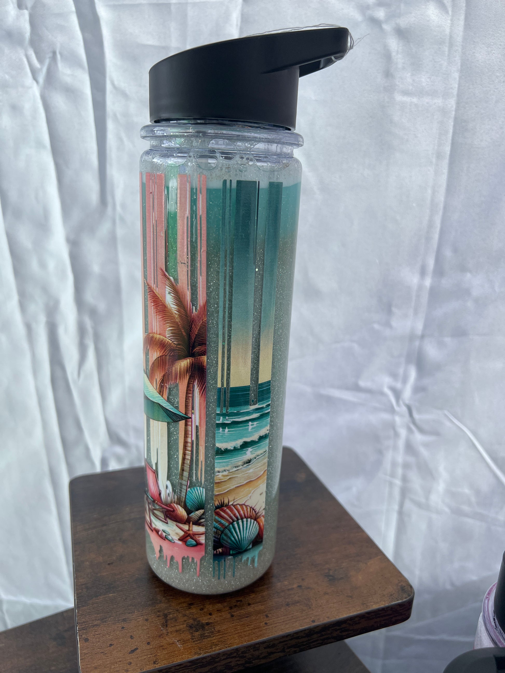 RTS. Beach acrylic glitter sand snow globe 18oz