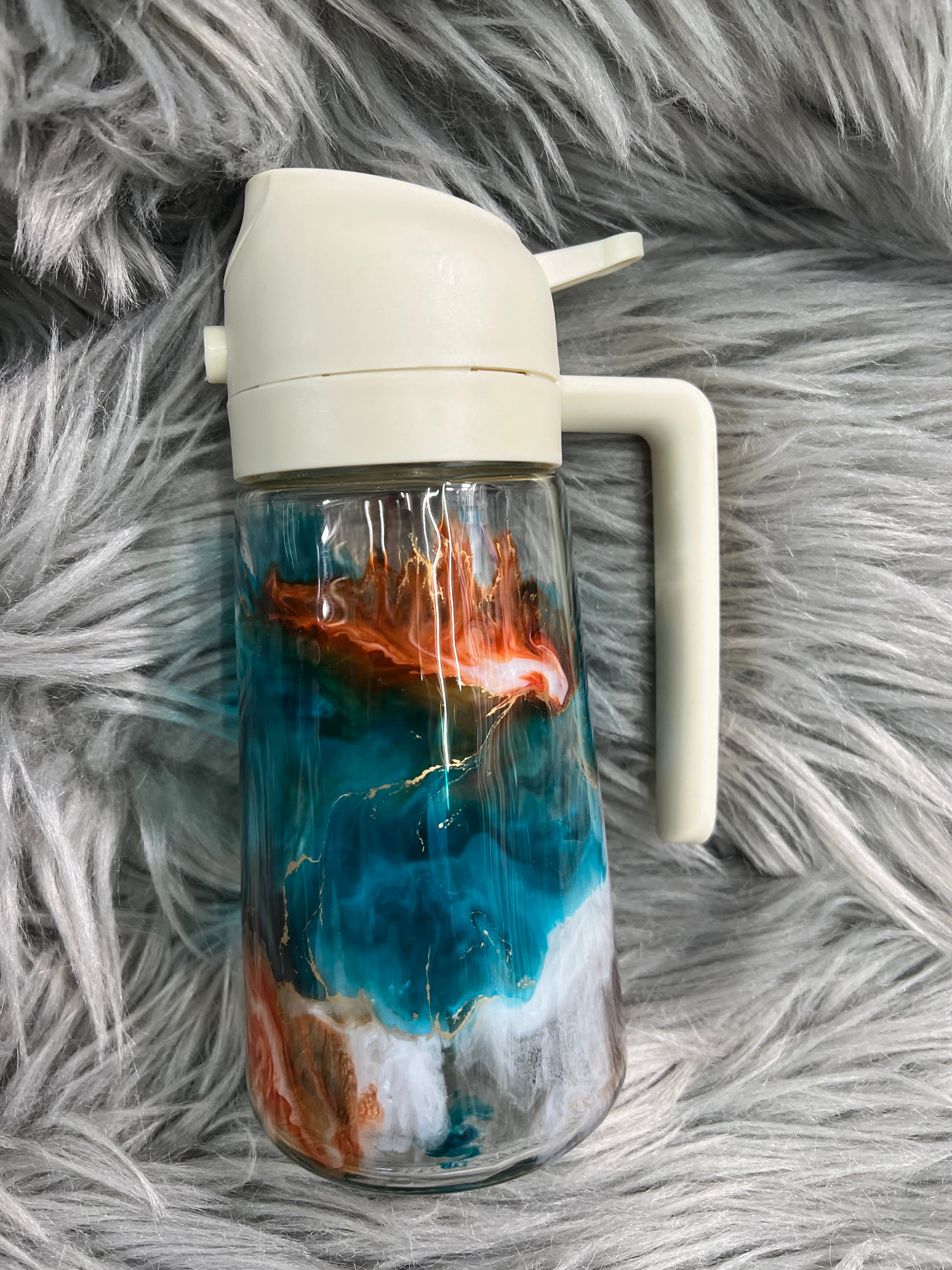 Clear Oil spray bottle will be epoxied and decorated into colors that match your décor